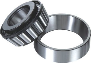 該類軸承裝有圓臺(tái)形滾子,滾子由內(nèi)圈大擋邊引導(dǎo)。設(shè)計(jì)上使得內(nèi)圈滾道面、外圈滾道面以及滾子滾動(dòng)面的各圓錐面的頂點(diǎn)相交于軸承中心線上的一點(diǎn)。單列軸承可承受徑向負(fù)荷與單向軸向負(fù)荷,雙列軸承可承受徑向負(fù)荷與雙向軸向負(fù)荷, 適用于承受重負(fù)荷與沖擊負(fù)荷。