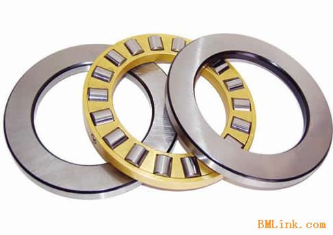 推力滾子軸承包括推力調(diào)心滾子軸承、推力圓柱滾子軸承和推力圓錐滾子軸承。推力調(diào)心滾子軸承能同時(shí)承受軸向和徑向負(fù)荷,但徑向負(fù)荷不得超過軸向負(fù)荷的55%。這類軸承遙另一個(gè)重要特點(diǎn)是具有自動(dòng)調(diào)心性能,因此使其對(duì)不同心度和軸的撓曲不甚敏感。只要負(fù)荷P和 P。不超過0.05C,且軸圈旋轉(zhuǎn),軸承就允許一定范圍的調(diào)心角。小的數(shù)值適用于大軸承,而且負(fù)荷增大時(shí)允許調(diào)心角將會(huì)減小。