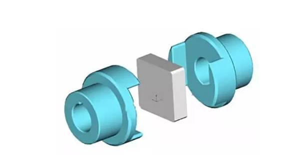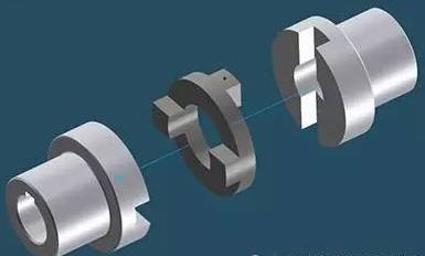 滑塊聯(lián)軸器與十字滑塊聯(lián)軸器結構相似,不同之處在于中間十字滑塊為方形滑塊,利用中間滑塊在其兩側半聯(lián)軸器端面的相應徑向槽內滑動,以實現(xiàn)兩半聯(lián)軸器聯(lián)接。